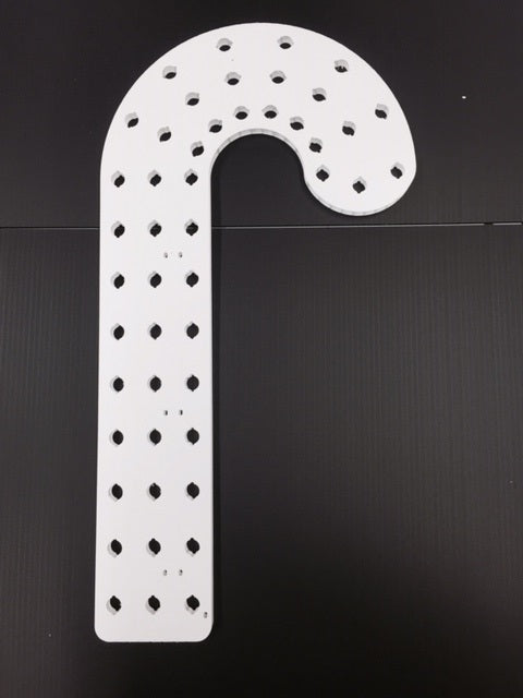 So now we are here to satisfy your sweet tooth. Our version of the Candy Cane is the ChromaCane. It is made from 10mm Coro. This is 2.5 times thicker than the 4mm at about 3/8" thick. They allow you to focus the LED to your audience without having to be diffused similar to our CoroArches. The ChromaCane Mini is 23" tall with 48 mounting holes for 12mm Pixels or RGB nodes in a 3 row by 16 column matrix. We designed them to be ziptied to a stake or our preferred method a segment of 1/2" EMT Conduit. The universal design allows the ChromaCane Mini to be either left hand or right hand. You can have a ChromaCane Mini ready to go in about 5 minutes, that's it. All you need to do is load your pixels or RGB nodes and hook it to your controller.