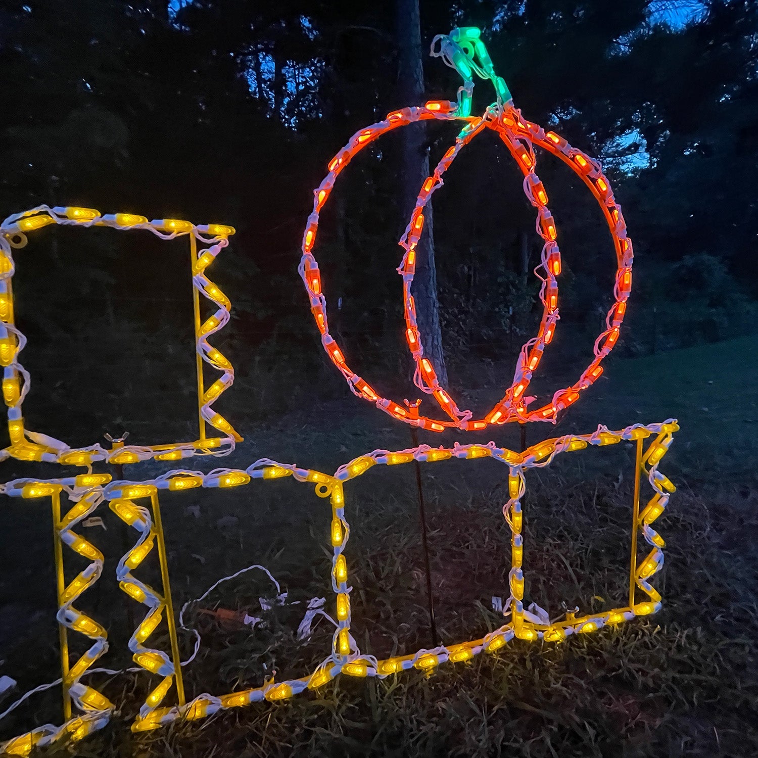 These Hay Bale Stacking Stakes are specifically designed to allow "stacking" atop our hay bales, making it appear as though you have a stack of harvest items atop your hay bales. These are specifically designed for use with wireframe displays that utilize "removable ground stakes," a feature of all Brite Ideas branded wireframe displays and also Holiday Lites Up exclusive wireframe displays. Add a pumpkin or two atop a hay bale for a perfect harvest display. Or maybe a black cat is hanging out up there on your spooky harvest stack.